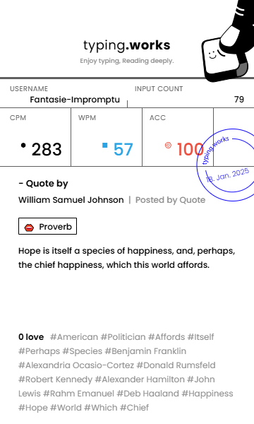 typing 타이핑연습 일지 [示]Etude 2025. 1. 18. 19:53 공유하기 게시글 관리 Ἄλφα καὶ τὸ Ὦ 저작자표시 비영리 변경금지 (새창열림) 'typing' 카테고리의 다른 글 타이핑연습 일지 (0) 2025.01.20 타이핑연습 일지 (0) 2025.01.19 타이핑연습 일지 (0) 2025.01.17 타이핑연습 일지 (1) 2025.01.16 타이핑연습 일지 (0) 2025.01.15 'typing' Related Articles 타이핑연습 일지 타이핑연습 일지 타이핑연습 일지 타이핑연습 일지