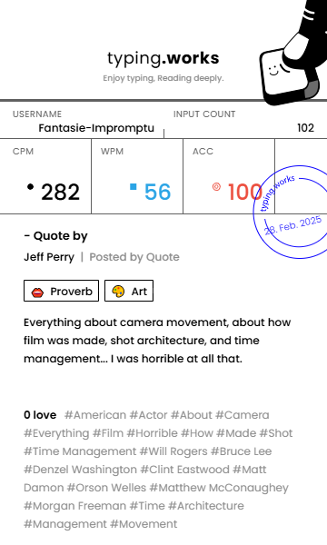 typing 타이핑연습 일지 [示]Etude 2025. 2. 28. 23:15 공유하기 게시글 관리 Ἄλφα καὶ τὸ Ὦ 저작자표시 비영리 변경금지 (새창열림) 'typing' 카테고리의 다른 글 타이핑연습 일지 (0) 2025.03.02 타이핑연습 일지 (0) 2025.03.01 타이핑연습 일지 (0) 2025.02.27 타이핑연습 일지 (0) 2025.02.27 타이핑연습 일지 (0) 2025.02.25 'typing' Related Articles 타이핑연습 일지 타이핑연습 일지 타이핑연습 일지 타이핑연습 일지