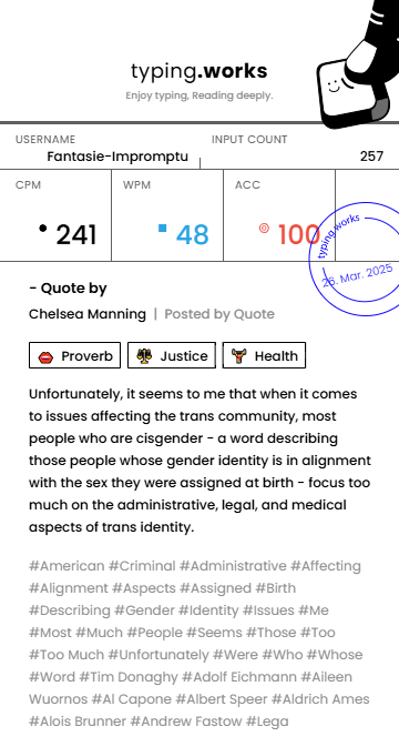 typing 타이핑연습 일지 [示]Etude 2025. 3. 26. 17:10 공유하기 게시글 관리 Ἄλφα καὶ τὸ Ὦ 저작자표시 비영리 변경금지 (새창열림) 'typing' 카테고리의 다른 글 타이핑연습 일지 (0) 2025.03.28 타이핑연습 일지 (0) 2025.03.27 타이핑연습 일지 (0) 2025.03.25 타이핑연습 일지 (0) 2025.03.23 타이핑연습 일지 (0) 2025.03.22 'typing' Related Articles 타이핑연습 일지 타이핑연습 일지 타이핑연습 일지 타이핑연습 일지