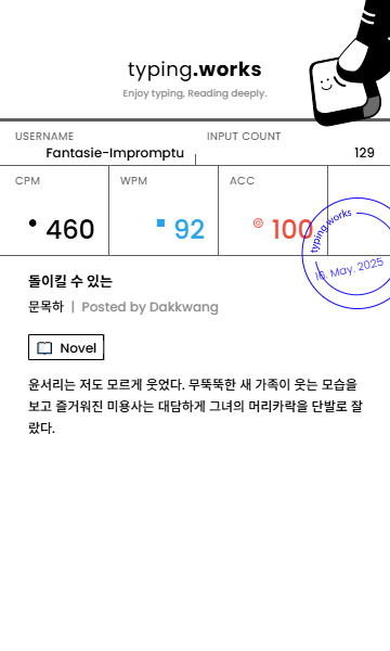 타이핑연습 일지  (0) 2025.05.15