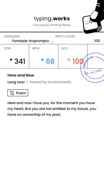 typing 타이핑연습 일지 [示]Etude 2025. 7. 9. 22:13 공유하기 게시글 관리 Ἄλφα καὶ τὸ Ὦ 저작자표시 비영리 변경금지 (새창열림) 'typing' 카테고리의 다른 글 타이핑연습 일지 (0) 2025.07.11 타이핑연습 일지 (0) 2025.07.10 타이핑연습 일지 (0) 2025.07.08 타이핑연습 일지 (0) 2025.07.08 타이핑연습 일지 (0) 2025.07.06 'typing' Related Articles 타이핑연습 일지 타이핑연습 일지 타이핑연습 일지 타이핑연습 일지