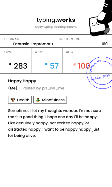 typing 타이핑연습 일지 [示]Etude 2026. 3. 10. 21:23 공유하기 게시글 관리 Ἄλφα καὶ τὸ Ὦ 저작자표시 비영리 변경금지 (새창열림) 'typing' 카테고리의 다른 글 타이핑연습 일지 (0) 2026.03.12 타이핑연습 일지 (0) 2026.03.12 타이핑연습 일지 (0) 2026.03.09 타이핑연습 일지 (0) 2026.03.09 타이핑연습 일지 (0) 2026.03.07 'typing' Related Articles 타이핑연습 일지 타이핑연습 일지 타이핑연습 일지 타이핑연습 일지