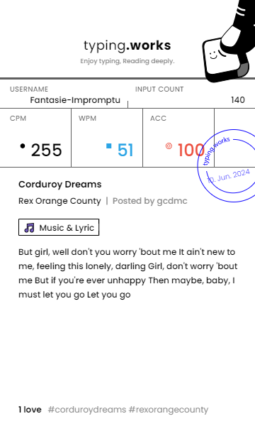 typing 타이핑연습 일지 [示]Etude 2024. 6. 10. 22:45 공유하기 게시글 관리 Ἄλφα καὶ τὸ Ὦ 저작자표시 (새창열림) 'typing' 카테고리의 다른 글 타이핑연습 일지 (0) 2024.06.12 타이핑연습 일지 (0) 2024.06.12 타이핑연습 일지 (0) 2024.06.09 타이핑연습 일지 (0) 2024.06.08 타이핑연습 일지 (0) 2024.06.07 'typing' Related Articles 타이핑연습 일지 타이핑연습 일지 타이핑연습 일지 타이핑연습 일지
